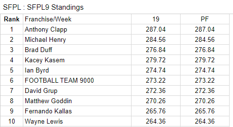 CONGRATULATIONS TO OUR TOP SCORERS AFTER WEEK ONE OF #SFPL9!!